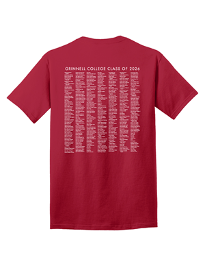 | PRE-ORDER 2026 Graduate Names T-shirt Price: $22.00100% Cotton Jersey T-shirt. Names printed on the back. The Grinnell College logo is printed on the front over, the left chest. You can pick up your order at the Pioneer Bookshop starting on May 15. Or, pick it up on Commencement morning at the Pioneer Bookshop tent. Extended hours for Commencement weekend are Saturday 9am - 5pm and Sunday 12 noon -4 pm. Additional shirts will be available to purchase over the Commencement Weekend. PRE-ORDER to pick up during Commencement Weekend.Graduation: See more » | |
